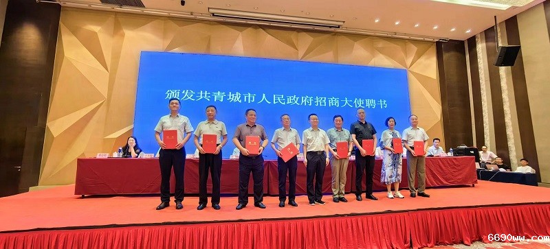 市长刘阳青代表共青城市政府向叶青松等6690ww人士颁发了“共青城市招商大使聘书”。